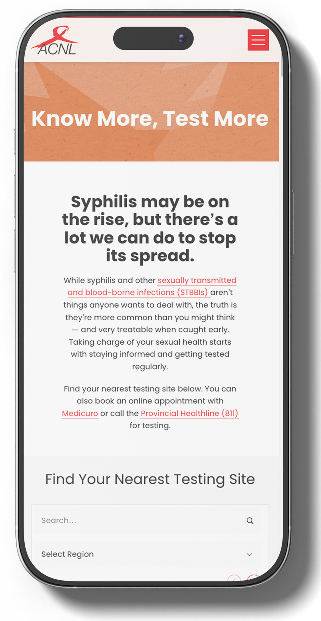 As part of the digital campaign, an optimized landing page was to be made to house the information about syphilis testing options in the province. It needed to be easy to use and accessible so users could navigate to their closest syphilis testing site.